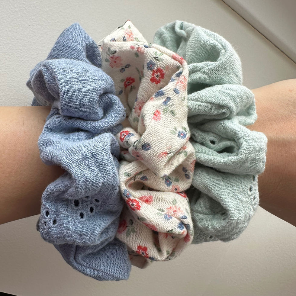 Alle Scrunchies werden mit viel Sorgfalt und Liebe zum Detail von Hand gefertigt. Ein Teil der Scrunchies entsteht aus ausgewählten Upcycling-Stoffen, zum Beispiel aus nicht mehr getragenen Kleidungsstücken - für mehr Nachhaltigkeit und Individualität.